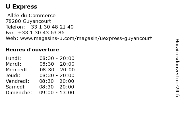 5 U Express (Distance: 14,01 km) 109 Avenue Paul Doumer, 92500 Rueil Malmaison express, magasin, nourriture, supermarché 6 U Express (Distance: 15,44 km) 1-3 Avenue Guy de Maupassant, 78400 Chatou express, magasin, nourriture, supermarché |