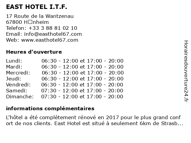 | Dimanche | 07:30-12:00 et 17:00-20:00 |