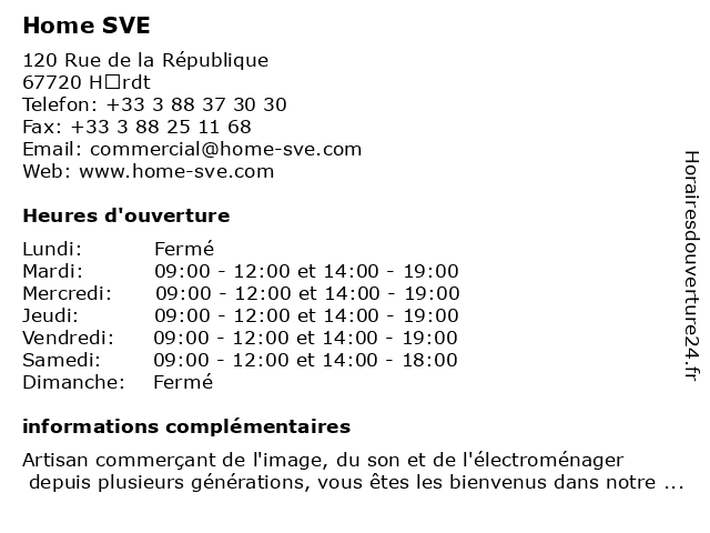| Mercredi | 09:00-12:00 et 14:00-19:00 |