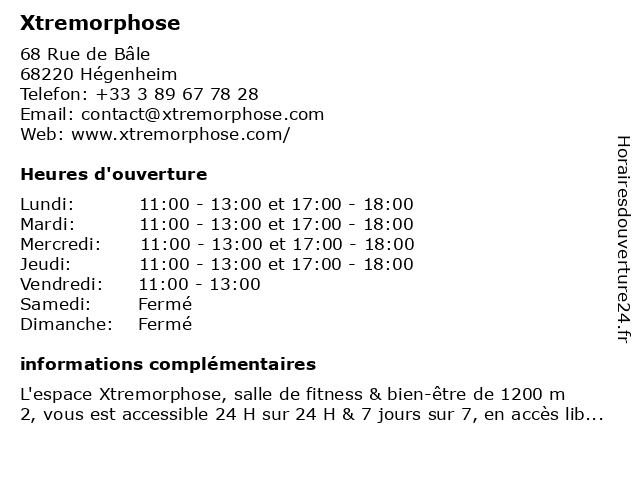 | Mercredi | 11:00-13:00 et 17:00-18:00 |
