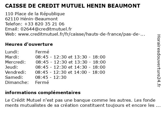 Termes de recherche pour CAISSE DE CREDIT MUTUEL HENIN BEAUMONT:de, beaumont, henin, crédit, mutuel, caisse |