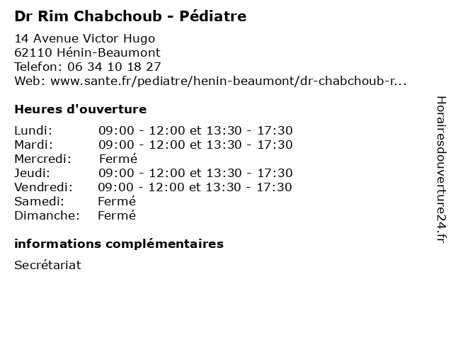 | Lundi | 09:00-12:00 et 13:30-17:30 |