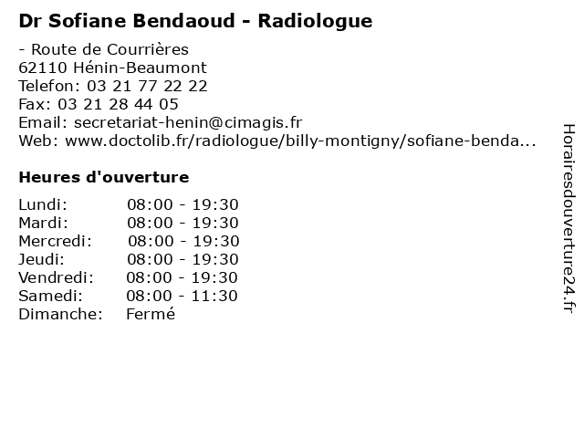 1 Dr Sofiane Bendaoud - Radiologue (Distance: 2,26 km) 456 Rue Elie Gruyelle, 62110 Hénin-Beaumont bendaoud, diagnostique, dr, imagerie, radiologie, radiologue, sofiane, thérapeutique 2 Dr Sofiane Bendaoud - Radiologue (Distance: 2,64 km) 168 Rue de l’’Abbaye, 62110 Hénin-Beaumont bendaoud, consultation, docteur, dr, med, médecin, radiologue, sofiane, traitement 3 Dr Sofiane Bendaoud - Radiologue (Distance: 3,90 km) 32 bis Rue Emile Zola, 62590 Oignies bendaoud, diagnostique, dr, imagerie, radiologie, radiologue, sofiane, thérapeutique 4 Dr Sofiane Bendaoud - Radiologue (Distance: 5,22 km) 30 Rue des Fusillés, 62420 Billy-Montigny bendaoud, consultation, docteur, dr, med, médecin, radiologue, sofiane, traitement 5 Dr Sofiane Bendaoud - Radiologue (Distance: 10,76 km) 3 Rue Alfred Dauchez, 62410 Wingles bendaoud, diagnostique, dr, imagerie, radiologie, radiologue, sofiane, thérapeutique 6 Dr Sofiane Bendaoud - Radiologue (Distance: 11,01 km) 57 Route de la Bassée, 62300 Lens bendaoud, consultation, docteur, dr, med, médecin, radiologue, sofiane, traitement |