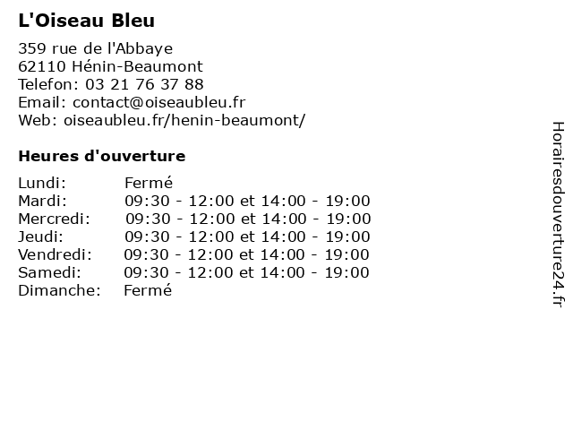 | Mardi | 09:30-12:00 et 14:00-19:00 |