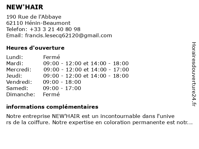 | Mardi | 09:00-12:00 et 14:00-18:00 |
