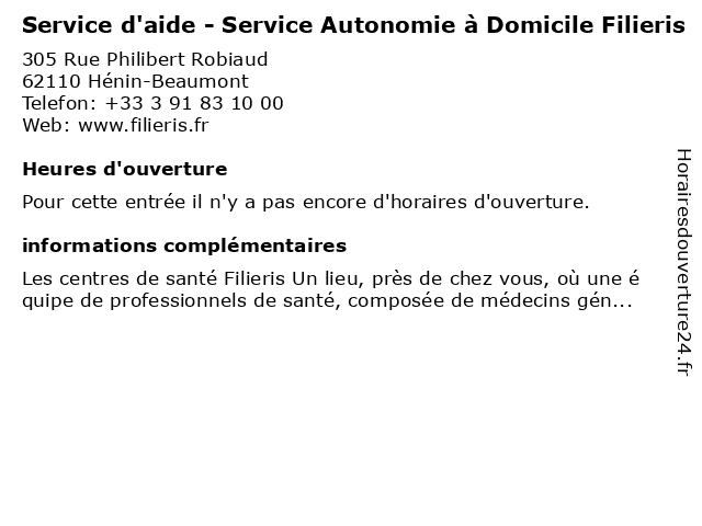 | Appeler Service d'aide - Service Autonomie à Domicile Filieris | |