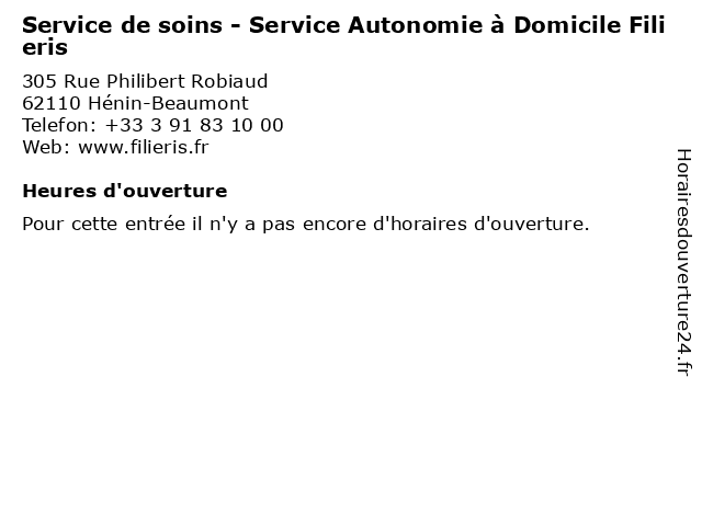 | Appeler Service de soins - Service Autonomie à Domicile Filieris | |