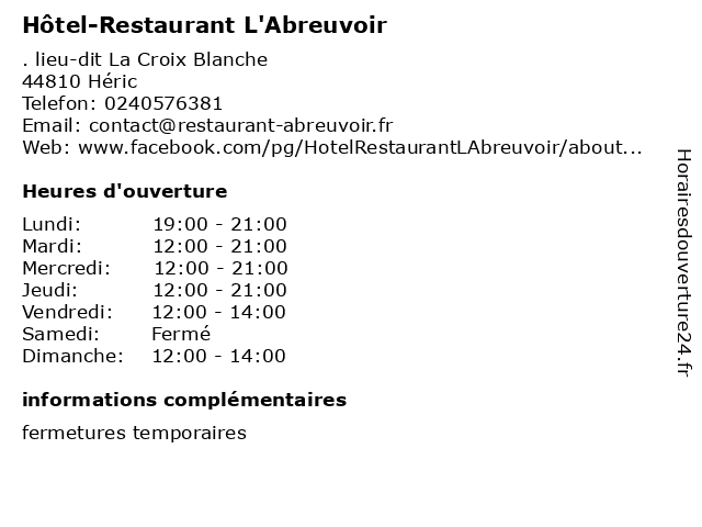 Termes de recherche pour Hôtel-Restaurant L'Abreuvoir:restaurant, café, hôtel, menus, boisson, français, traditionnel, carte, l', l'abreuvoir, abreuvoir |