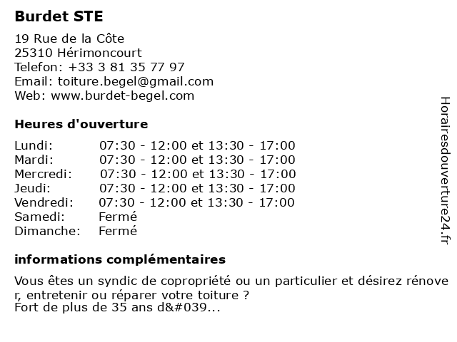Lundi | 07:30-12:00 et 13:30-17:00 |