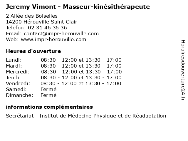| Jeudi | 08:30-12:00 et 13:30-17:00 |