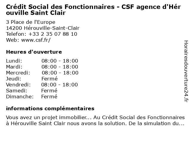 Termes de recherche pour Crédit Social des Fonctionnaires - CSF agence d'Hérouville Saint Clair:saint, clair, des, agence, crédit, social, d'hérouville, fonctionnaires, csf |