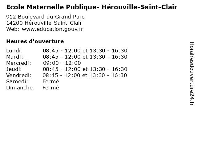 | Lundi | 08:45-12:00 et 13:30-16:30 |