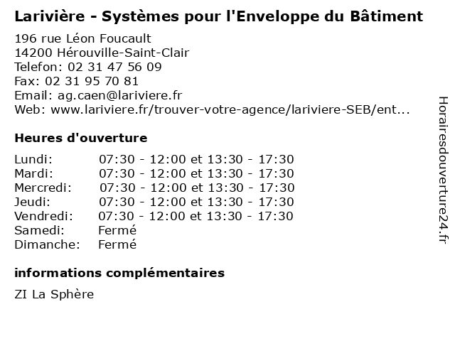 | Lundi | 07:30-12:00 et 13:30-17:30 |