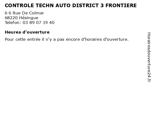 | Appeler CONTROLE TECHN AUTO DISTRICT 3 FRONTIERE | |