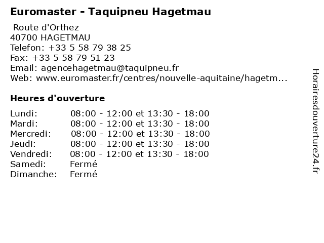 | Mardi | 08:00-12:00 et 13:30-18:00 |