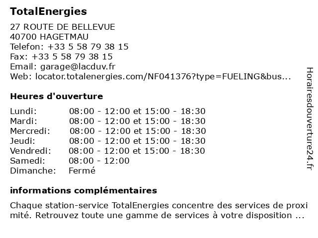 | Lundi | 08:00-12:00 et 15:00-18:30 |