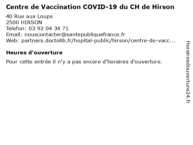 | Appeler Centre de Vaccination COVID-19 du CH de Hirson | |
