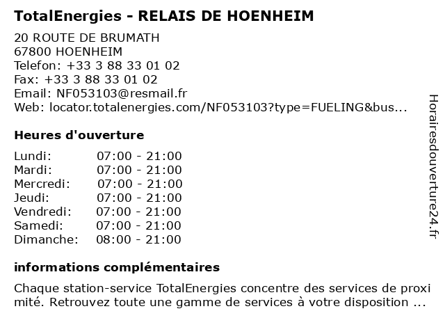 Termes de recherche pour TotalEnergies - RELAIS DE HOENHEIM:relais, de, total, hoenheim, gas station, station service, tankstelle, totalenergies |