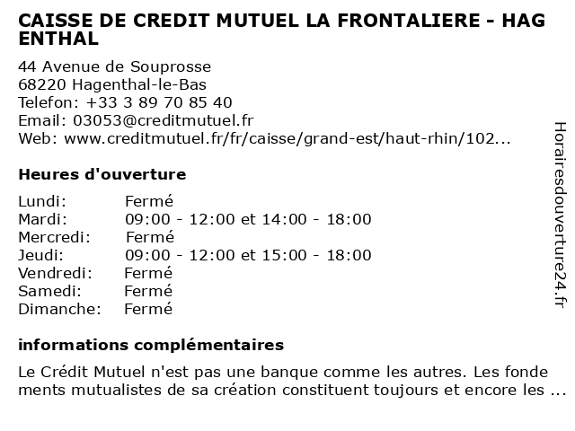 Termes de recherche pour CAISSE DE CREDIT MUTUEL LA FRONTALIERE - HAGENTHAL:la, de, crédit, mutuel, caisse, hagenthal, frontaliere |