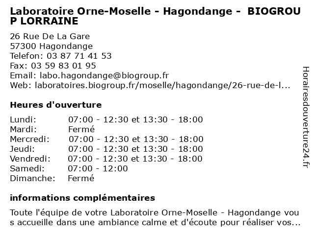 | Lundi | 07:00-12:30 et 13:30-18:00 |
