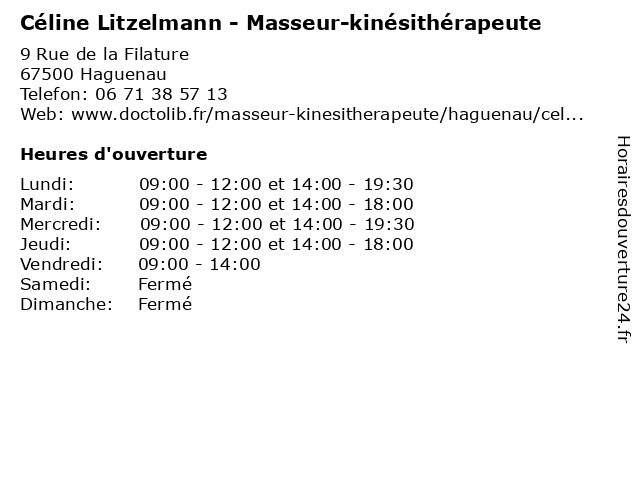 | Lundi | 09:00-12:00 et 14:00-19:30 |