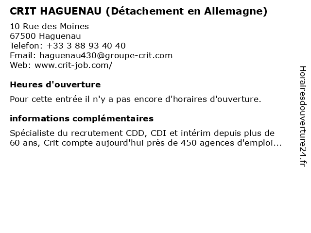 Appeler CRIT HAGUENAU (Détachement en Allemagne) | |