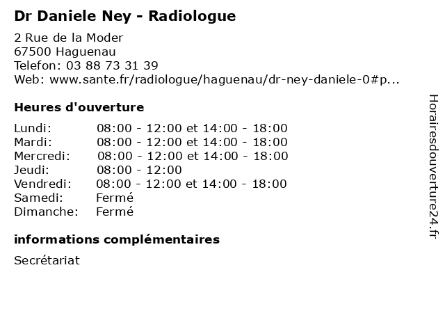 1 Dr Daniele Ney - Radiologue (Distance: 0,53 km) 1 Rue Colome, 67500 Haguenau daniele, diagnostique, dr, imagerie, ney, radiologie, radiologue, thérapeutique 2 Dr Daniele Wolff - Médecin généraliste (Distance: 4,28 km) 60 Rue d'Ohlungen, 67590 Schweighouse-sur-Moder 67590, daniele, dr, generaliste, généraliste, medecin, moder, médecin, schweighouse, wolff 3 Eckly Lenoir Daniele (Distance: 17,47 km) 119 Rue De Lampertheim, 67550 Vendenheim daniele, eckly, lenoir, restaurants 4 Dr Dominique Kleinclaus - Radiologue (Distance: 0,00 km) 2 Rue de la Moder, 67500 Haguenau diagnostique, dominique, dr, imagerie, kleinclaus, radiologie, radiologue, thérapeutique 5 Dr Sébastien Thiriat - Radiologue (Distance: 0,00 km) 2 Rue de la Moder, 67500 Haguenau diagnostique, dr, imagerie, radiologie, radiologue, sebastien, sébastien, thiriat, thérapeutique 6 Dr Stéphanie Eyermann - Radiologue (Distance: 0,00 km) 2 Rue de la Moder, 67500 Haguenau diagnostique, dr, eyermann, imagerie, radiologie, radiologue, stephanie, stéphanie, thérapeutique |