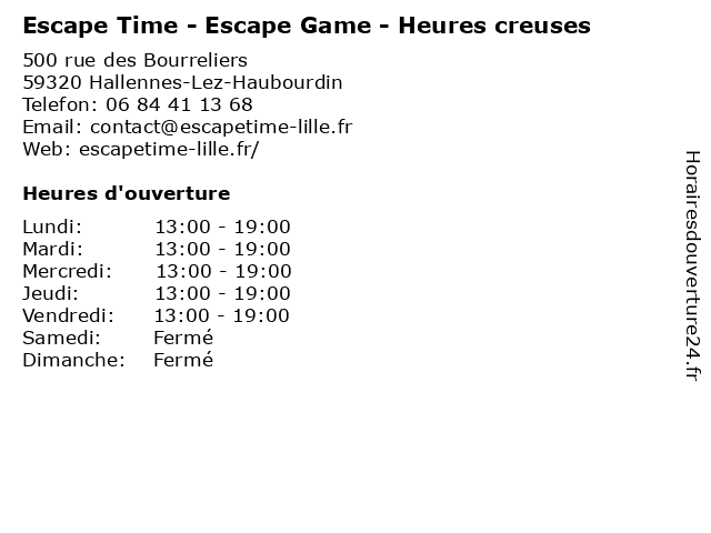 | Lundi | 13:00-19:00 |