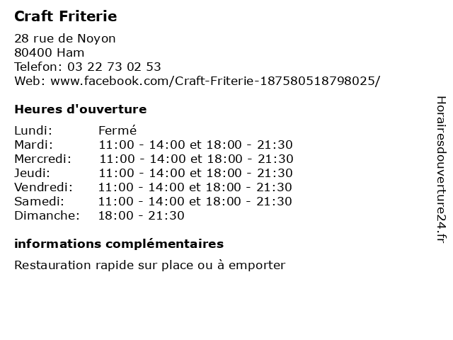 | Vendredi | 11:00-14:00 et 18:00-21:30 |