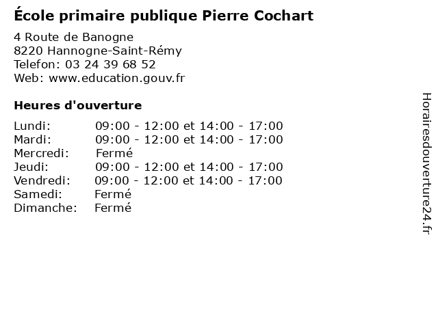 | Mardi | 09:00-12:00 et 14:00-17:00 |