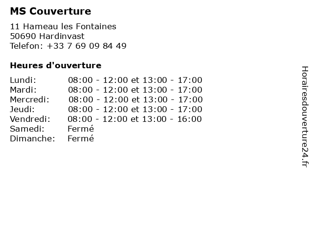 | Mardi | 08:00-12:00 et 13:00-17:00 |