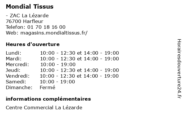 | Mardi | 10:00-12:30 et 14:00-19:00 |