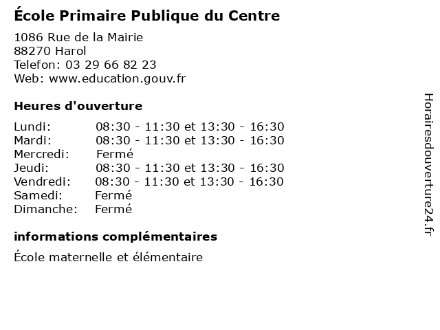 | Mardi | 08:30-11:30 et 13:30-16:30 |