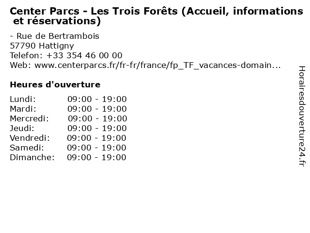 | Dimanche | 09:00-19:00 |