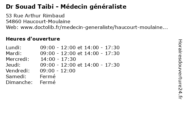 | Mardi | 09:00-12:00 et 14:00-17:30 |