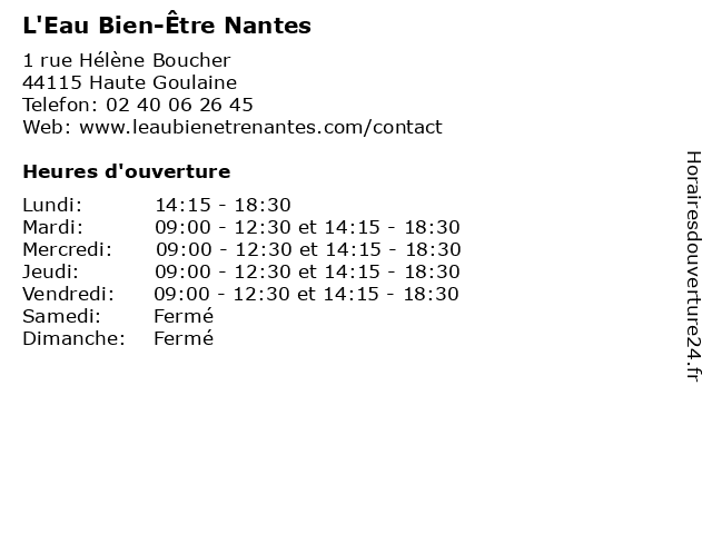 | Mardi | 09:00-12:30 et 14:15-18:30 |