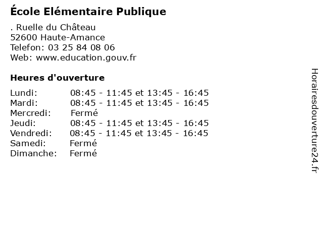 | Dimanche | Fermé |