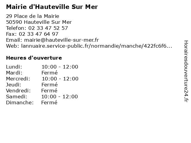 Termes de recherche pour Mairie d'Hauteville Sur Mer:sur, mer, administration, mairie, services publics, d'hauteville |