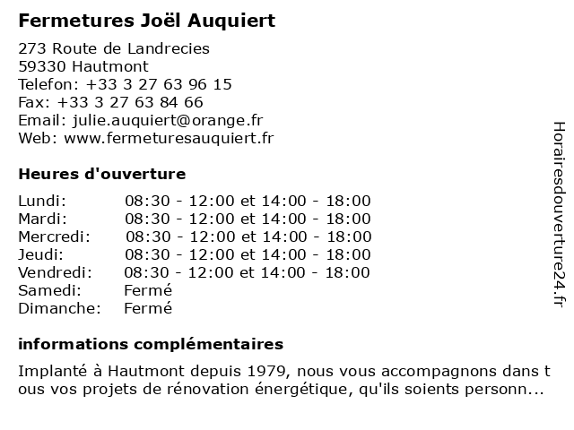 | Lundi | 08:30-12:00 et 14:00-18:00 |