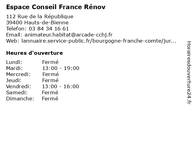 | Samedi | Fermé |