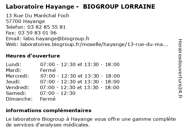 | Lundi | 07:00-12:30 et 13:30-18:00 |