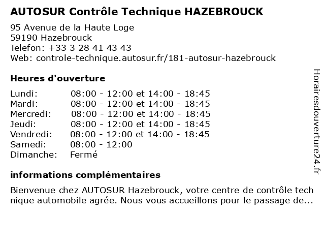 | Lundi | 08:00-12:00 et 14:00-18:45 |