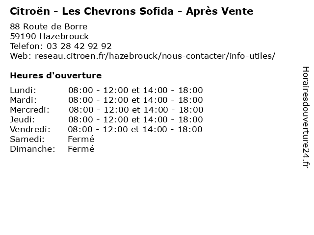 1 Citroen - Les Chevrons Sofida - Horaires Généraux (Distance: 0,00 km) 88 Route De Borre, 59190 Hazebrouck chevrons, citroen, généraux, horaires, les, neuves, occasion, sofida, vente, voitures 2 Citroen - Les Chevrons Sofida - Commercial (Distance: 0,00 km) 88 Route de Borre, 59190 Hazebrouck accesoires, automobile, chevrons, citroen, commercial, les, neuf, neuf/d'occasion, sofida, vehicule, vehicules, vente 3 CITROEN Hazebrouck - SOFIDA Auto (Distance: 0,00 km) 88 Route de Borre, 59190 Hazebrouck auto, citroen, hazebrouck, sofida 4 PEUGEOT Hazebrouck - SOFIDA Auto (Distance: 0,19 km) 28 Route de Borre, 59190 Hazebrouck auto, hazebrouck, peugeot, sofida 5 Toyota (Apres-Vente ) (Distance: 1,77 km) . Avenue de Saint Omer, 59190 Hazebrouck apres, automobiles, concéssionnaire, garage, motos, toyota, vente 6 Auto Expo - Volkswagen - Après vente (Distance: 2,05 km) 103 Avenue de Saint-Omer, 59190 Hazebrouck après, auto, commercial, et, expo, hazebrouck, neufs, occasions, service, services, vente, volkswagen, véhicules |