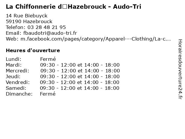| Mardi | 09:30-12:00 et 14:00-18:00 |