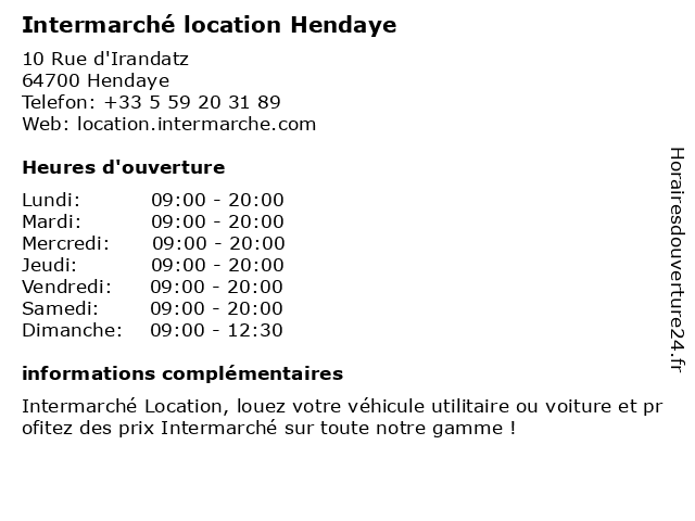 1 Intermarché location Hendaye (Distance: 0,04 km) 10 Rue d'Irandatz, 64700 Hendaye hendaye, intermarché, location 2 Intermarché - Borne de Recharge Electrique (Distance: 0,04 km) 9 Rue d'Irandatz, 64700 Hendaye borne, de, electrique, intermarché, recharge, voiture, électrique 3 Square Habitat Hendaye (Syndic, Gestion / Location & Transaction) (Distance: 2,11 km) 80ter Avenue des Mimosas, 64700 Hendaye gestion, habitat, hendaye, location, square, syndic, transaction 4 CarGo Location de Véhicules URRUGNE (Distance: 7,03 km) Chemin d'Urrizti, 64122 Urrugne cargo, de, location, urrugne, véhicules 5 Agence Donibane Location (Distance: 9,03 km) 46 avenue Jean Jaurès, 64500 Ciboure agence, agence transaction, donibane, immobiler, location, vente 6 E.Leclerc Location (Distance: 12,62 km) 1 Avenue Lahanchipia, 64500 Saint Jean De Luz de, e.leclerc, location, service, services, services à la personne, véhicules |