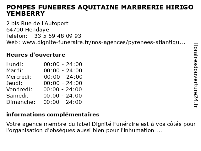 1 POMPES FUNEBRES AQUITAINE MARBRERIE HIRIGOYEMBERRY (Distance: 9,21 km) 44 Avenue Oihan Alde, 64500 Ciboure aquitaine, avis de décès, crémation, entretien de sépulture, fleurs deuil, formalités après obsèques, funebres, hirigoyemberry, inhumation, marbrerie, monument funéraire, pompes, pompes funèbres, prévoyance obsèques 2 POMPES FUNEBRES AQUITAINE MARBRERIE HIRIGOYEMBERRY (Distance: 10,77 km) Rue Duconte, 64500 Saint-Jean-de-Luz aquitaine, avis de décès, crémation, entretien de sépulture, fleurs deuil, formalités après obsèques, funebres, hirigoyemberry, inhumation, marbrerie, monument funéraire, pompes, pompes funèbres, prévoyance obsèques 3 BMA Bétons et Matériaux d'Aquitaine (Distance: 0,86 km) Rue Nouvelle, 64700 Hendaye bma, bétons, d'aquitaine, et, matériaux 4 Banque Populaire Aquitaine Centre Atlantique (Distance: 1,19 km) 2 avenue des Allées, 64700 Hendaye aquitaine, assurances, atlantique, banque, centre, populaire 5 Aquitaine 3D (Distance: 9,40 km) 4 Impasse Jean Moulin, 64500 Ciboure 3d, aquitaine, dératisation, entretien, nuisibles, services 6 Pompes Funèbres Euskal Ehorzketak (Distance: 10,12 km) 3 Boulevard du Commandant Passicot, 64500 Saint-Jean-de-Luz ehorzketak, euskal, funèbres, pompes |
