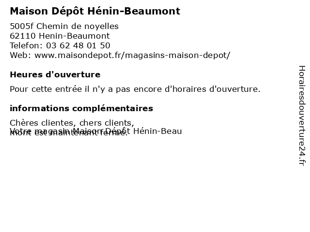 | Appeler Maison Dépôt Hénin-Beaumont | |