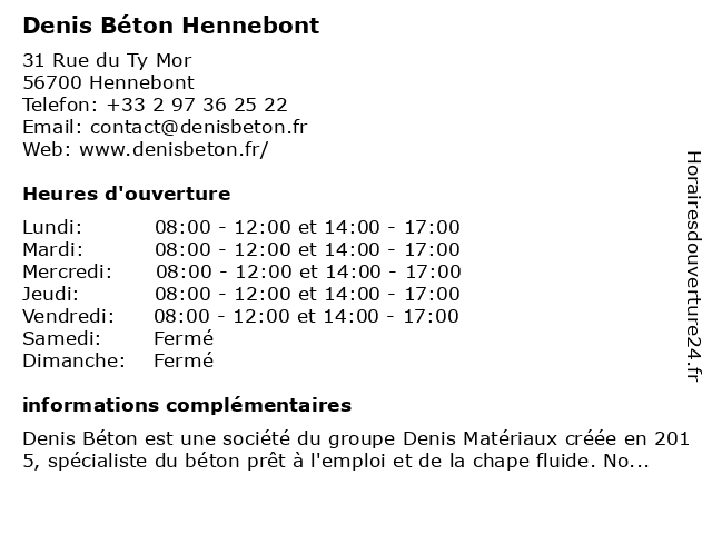 1 Denis Matériaux Hennebont (Distance: 0,11 km) 31 Rue du Ty Mor, 56700 Hennebont denis, hennebont, matériaux 2 Fora Scie Forage et Sciage Béton-SAS (Distance: 4,69 km) 361 Rue Daniel Trudaine, 56600 Lanester béton, et, fora, forage, sas, sciage, scie 3 Denis Materiaux (Distance: 8,95 km) . Ty Mor, 56704 Lorient constructives, denis, equipements, materiaux, services 5 GPS Béton Gaudin Pompage Sols Béton (Distance: 14,64 km) ZI de Restavy, 56240 Plouay béton, gaudin, gps, pompage, sols 6 |