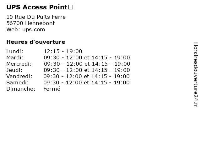 | Mardi | 09:30-12:00 et 14:15-19:00 |