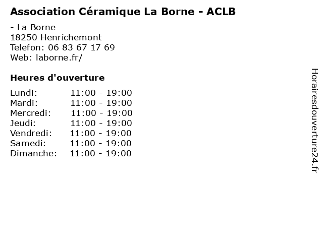 | Samedi | 11:00-19:00 |